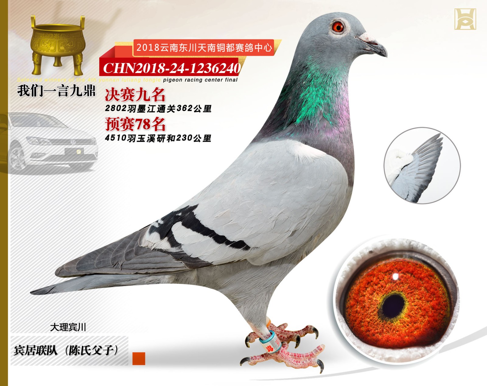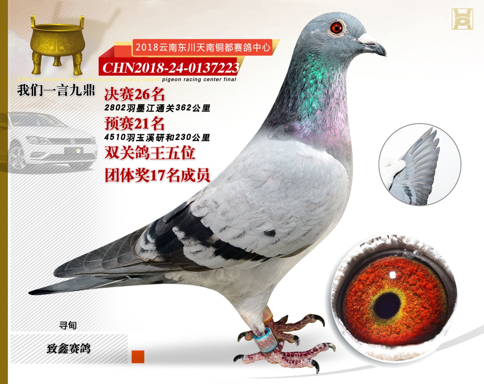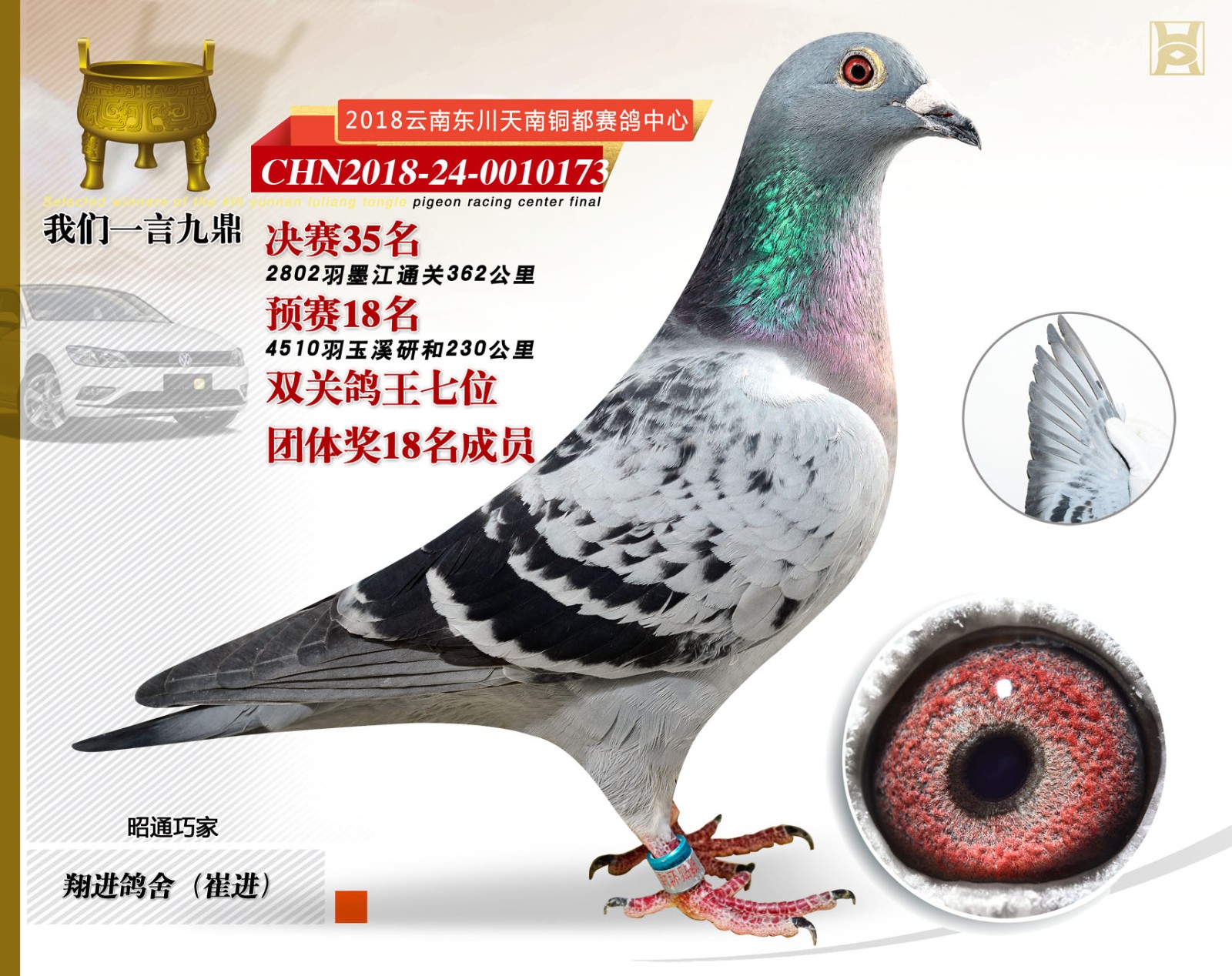 2018年东川天南铜都赛鸽中心决赛前十名、鸽王前十名照片欣赏